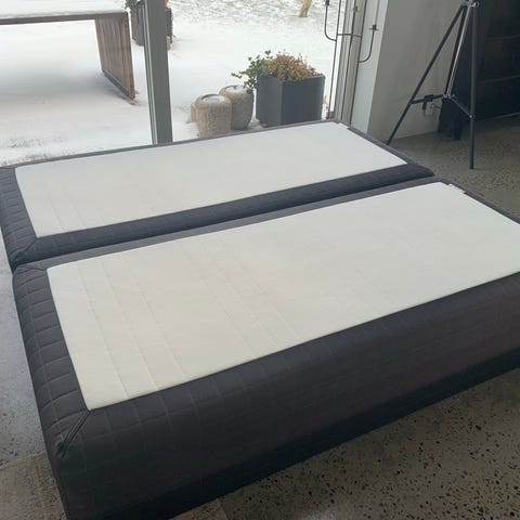 Sängram, sängbord, lampor, byrå och pocketmadrass från IKEA