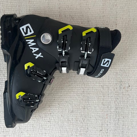Salomon S Max skidpjäxor i svart färg. Utrustade med fyra spännen för justerbar passform och bra stöd. Designade för skidåkning med en robust och slitstark konstruktion.