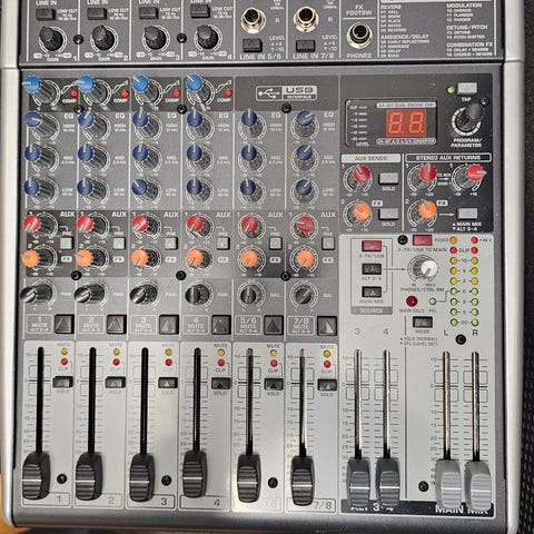 Behringer Eurorack UB802, 8-Input 2-Bus mixer med låg ljudnivå, stereo AUX retur och FX send.