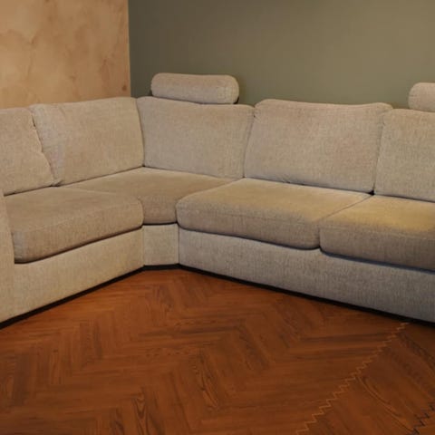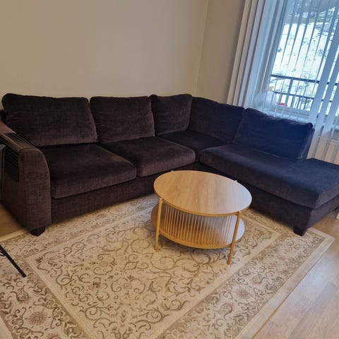 Grå Mio Friday soffa med cozy hörn inklusive två nackstöd. Går att dela i tre delar för transport.
