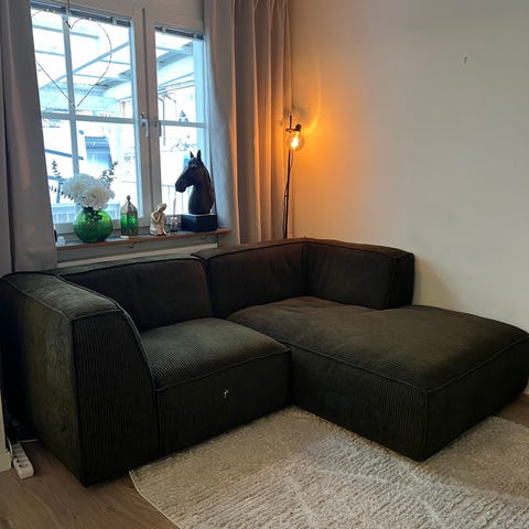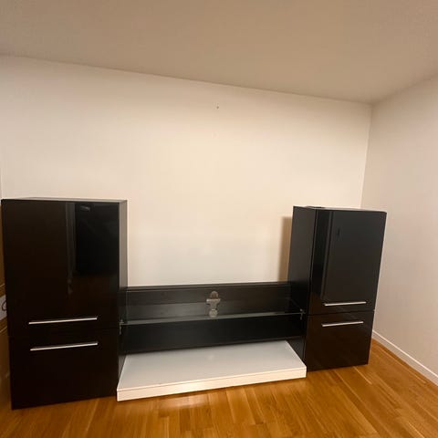 Säljer en stilren och bekväm soffgrupp i svart/vitt, inklusive matchande TV-bänk samt 2 sidobord (syns ej på bilden). Allt är i mycket bra skick och välskött.