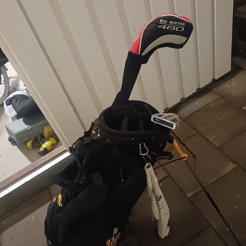 Wilson Staff golfset med bag och klubbor. Innehåller flera golfklubbor i olika typer och ett bärbart golfbag med flera fack för förvaring. Passar för nya golfspelare som behöver ett komplett set för spel och träning.