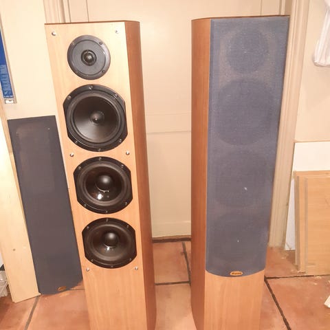 Infinity högtalare i trä med Polycell diskant. Högtalaren har en svart front och är tillverkad i trä. Anslutningar för högtalarkablar finns på baksidan. Produkten är avsedd för ljudåtergivning i hemmiljö. 1000kr för två stycken.