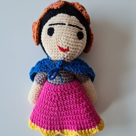 1) Frida Kahlo docka från Mexico, handvirkad, bra skick, 35 kr