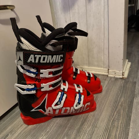 Technopro pjäxor mått 220-225 mm. Färgkombination i vitt och lila. Pjäxorna har fyra spännen för justerbar passform.