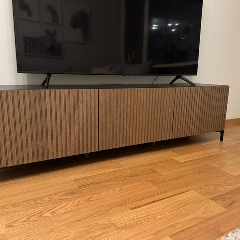 Stabilt golvställ för en stor tv. Väldigt bra om man inte vill borra i väggen och inte riktigt gillar tv-bänkar. Ger stilrent och luftigt intryck.
