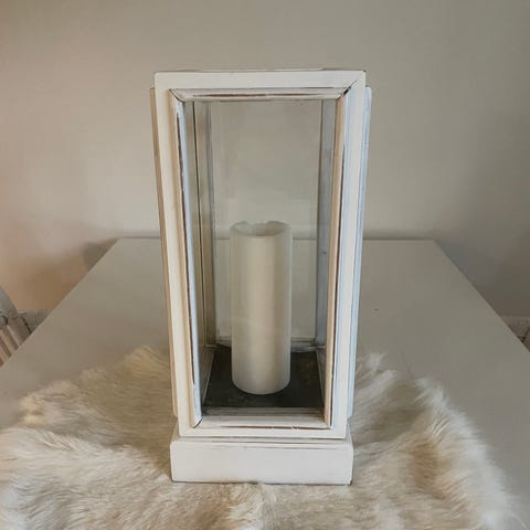 Jättefin stor glaslykta med ett svagt vitt mönster.
