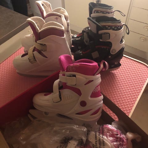 Barn skridskor i olika storlekar samt hockey hjälm