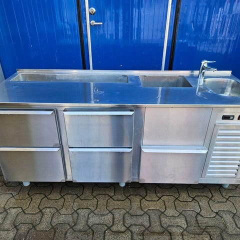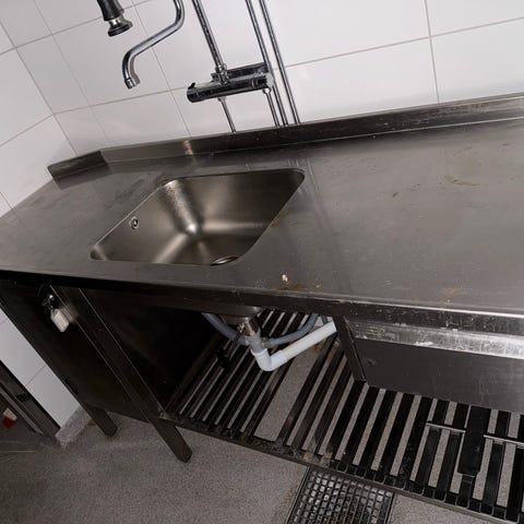 Rostfri bänk med diskho inkl diskkran med dusch och avloppsrör