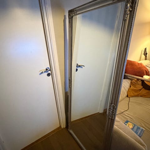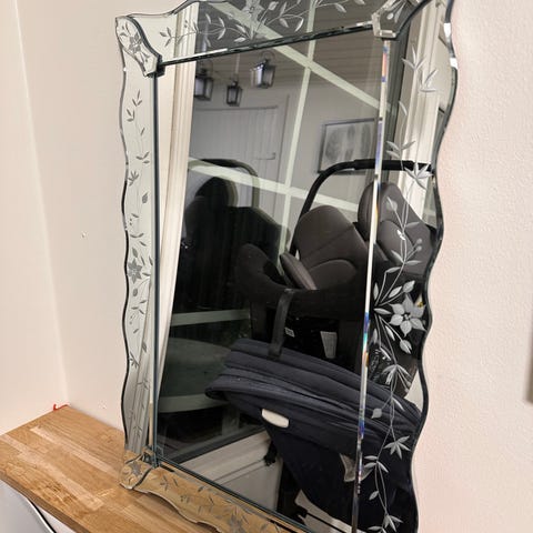 IKEA spegel med dekorativa ornament. Spegeln har en ram med detaljerade mönster och är avsedd för väggmontering.