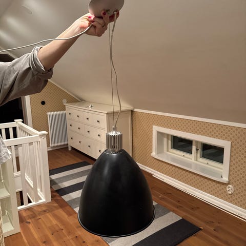 Leeds Taklampa 38cm bred i råsvart är en snygg och robust industriell taklampa i grov metall. 47 cm hög