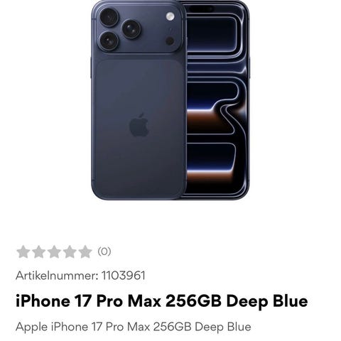 Apple iPhone 17 Pro Max 256 GB helt ny oöppnad förpackning