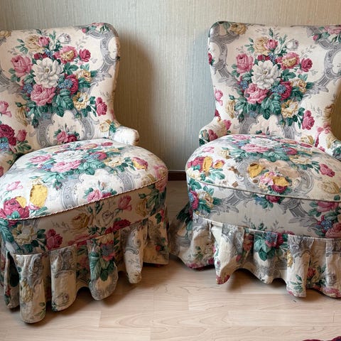 Två fåtöljer i mycket bra skick bortskänkes. Hämtas på Furuvägen 1 i Segeltorp lördagen 31 januari ca kl 15.00. Observera att vi måste komma överens om hämtningen. Det går inte att bara dyka upp!