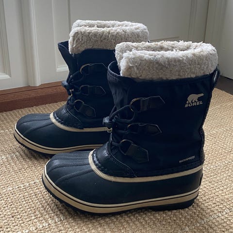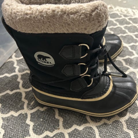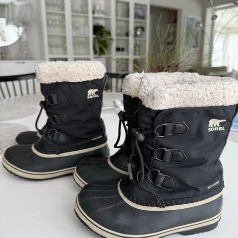 Sorel vinterskor i blå färg, storlek 37. Skorna har en robust sula med bra grepp och är designade för kalla väderförhållanden. Material och detaljer är anpassade för att ge värme och skydd vid användning i vintermiljö.