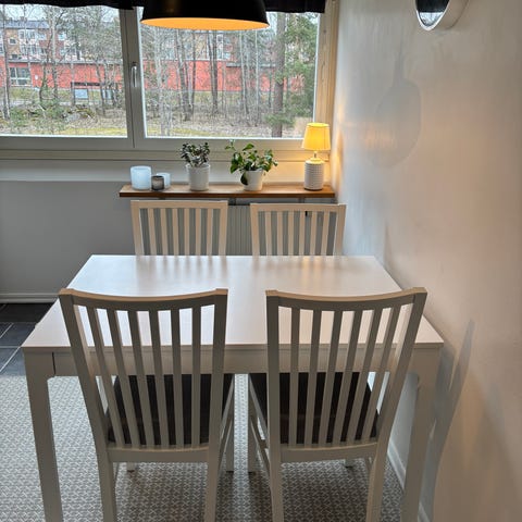 Säljer fyra stycken gråa Odger-stolar från Ikea.