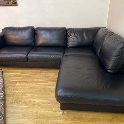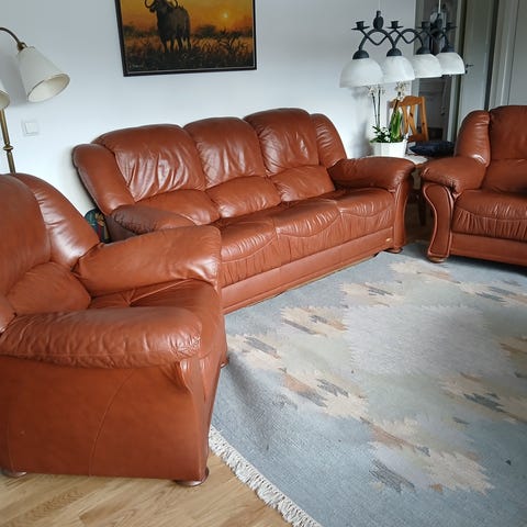 en jätte fin divansoffan i äkta skinn. Har haft den i några år men de känns och ser fortfarande fräsh ut.
