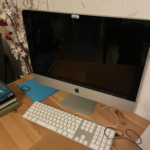 Stationär dator. iMacOS 21" - System iOS Sonoma från 2023, Intel i7-processor, 12 GB RAM och 500 GB hårddisk. Gott skick.