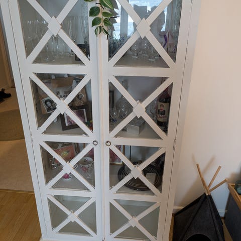 Ett vitrinskåp / träskåp, kan vara från ikea men osäkert.
