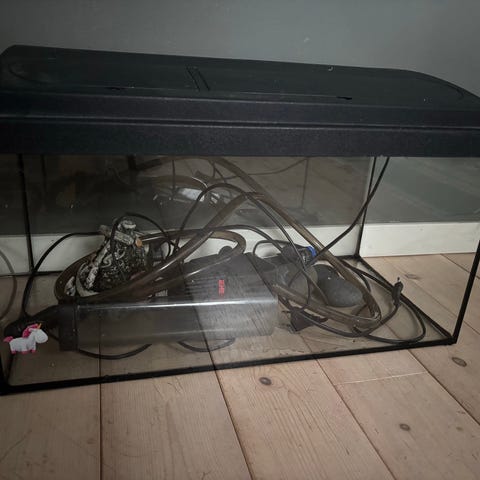 Säljer ett Akvarium. Det bara står och samlar damm. Det fungerar, och har inga skador, botten är glas som väggarna,