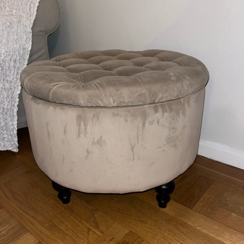 Säljer grå sittpuff som har förvaring i sammet material. Fortfarande super fint skick, tror diametern är på ca 50cm