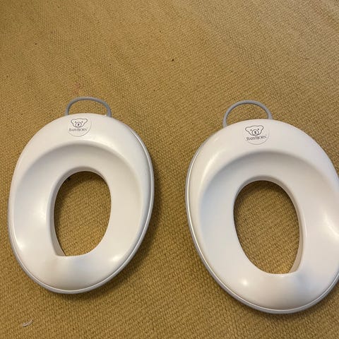 2 stycken toalettsitsar (BabyBjörn) och 1 badbalja