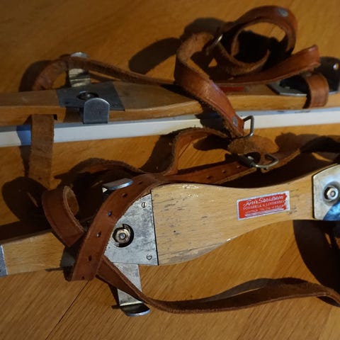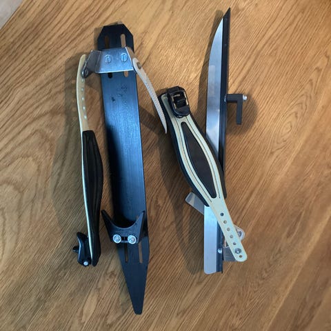 Två par långfärdsskridskor med pjäxor