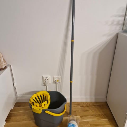 Mopphink med urvridare & ny mopp med utdragbar stav