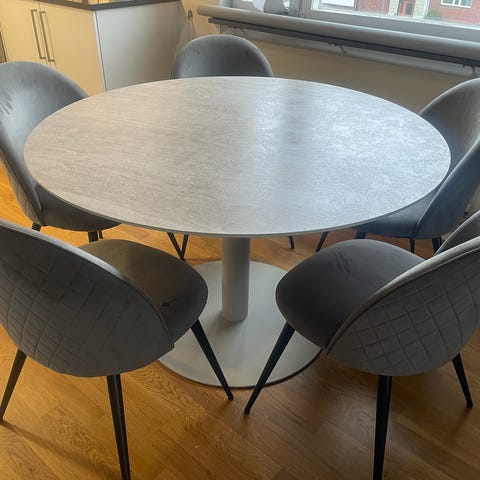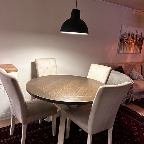 Säljer ett helt nytt matbord som aldrig öppnats eller monterats. Bordet är runt och har plats för 4 personer. Köptes i samband med flytt då jag trodde vårt gamla bord var för stort för nya köket, men det fick plats – därför har detta blivit stående oöppnat i originalförpackning.