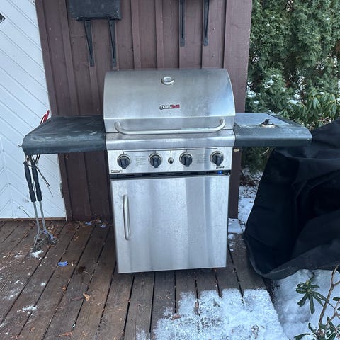 Napoleon gasolgrill med fyra brännare och sidobrännare. Grillytan har galler