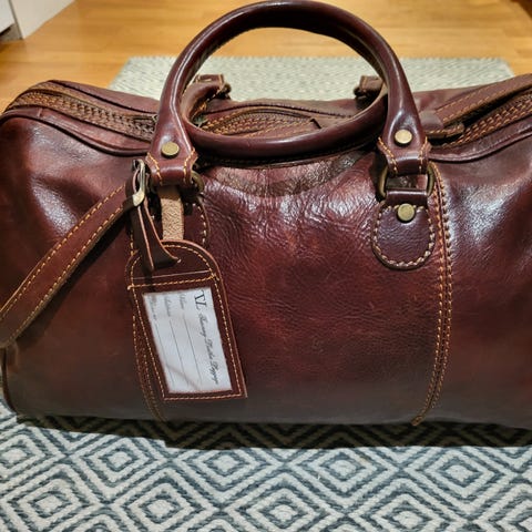 Säljer tre fantastiska äkta läderväskor i olika färger: djup brun, snygg marinblå och livlig rosa. Alla är i måtten 55x27 cm, perfekta som weekendväskor eller för resor. Slitstarka handtag, dragkedja och fina detaljer som syns på bilderna.