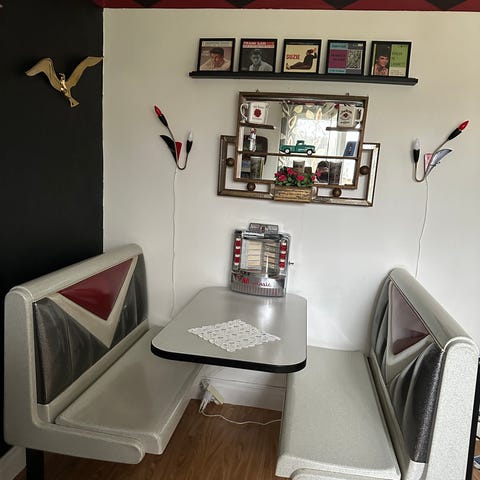 Vintage 80-tal med patina, 8st stolar och glasbord