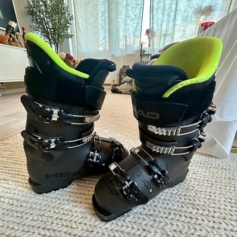 Head Kore 60 Junior pjäxor i storlek 23.5. Pjäxorna har fyra spännen och är anpassade för junioråkare. Bra skick, 15 skiddagar på de här av en lätt åkare. Noggrant torkade efter varje åkdag. Nypris 1795:-