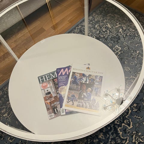 Fint glasbord med underrede för tidningar