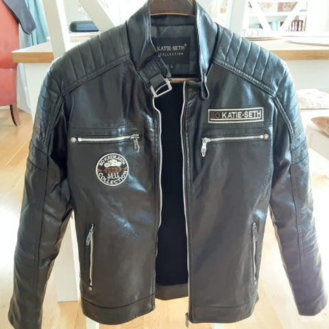 En mycket fräck skinnjacka, jag impulsköpte, men tyvärr inte använt. 2 sidfickor, 2 bröstfickor och en innerficka. Stort relief-tryck på ryggen: American Route 66 the Mother road + en HD. Storleken 4xl är gravt överdriven, jag skulle kalla den 2xl.. Helt oanvänd, mycke fräck, kan skickas.