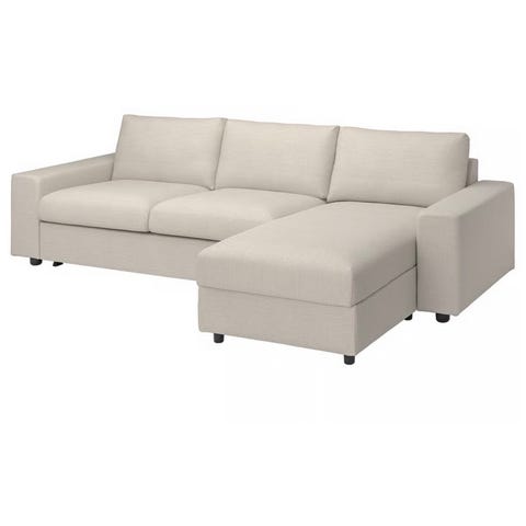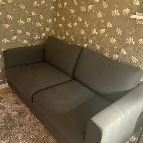 Bäddsoffa från IKEA, VIMLE i färgen Gunnared. Har en säng på 140cm, har köpt till en bäddmadrass från Jysk som man kan få till. Divan till vänster när man sitter i soffan.