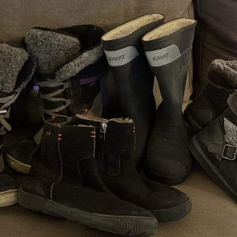 Kavat vinterkängor för flicka i storlek 33. Skorna är svarta med ett blommönster och har en slitstark sula. De är avsedda för vinterbruk och erbjuder skydd och isolering mot kyla.