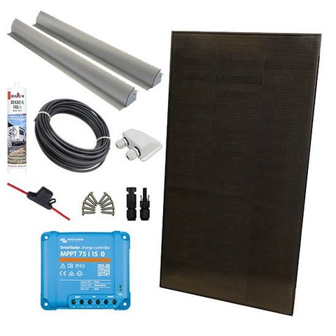 Nytt Solcellspaket för Husbil/ Husvagn 300 watt bestående av 2 st 150 w lättviktspaneler 1050 X 550 mm komplett med regulator för Bly-Agm-Lithium samt kablar. Pris 1650:-