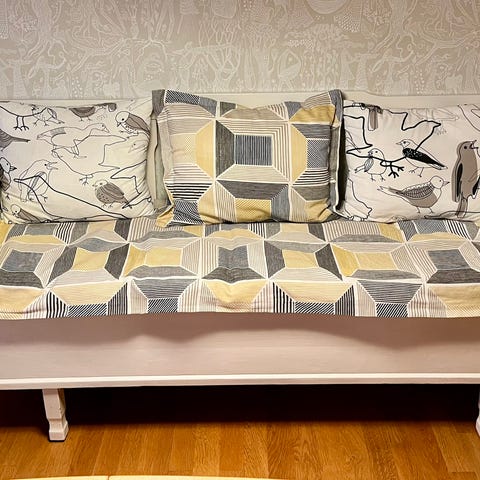 Kuddar kan köpas till om man vill.