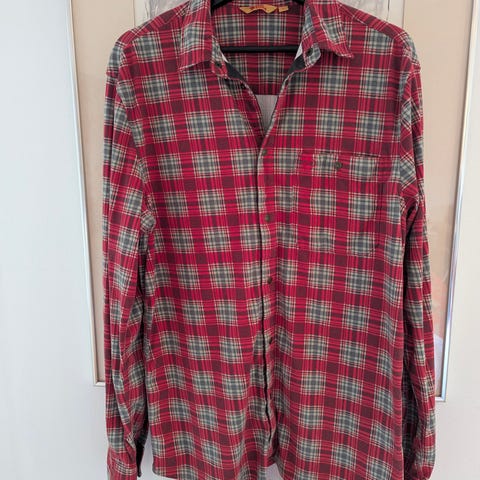 Endast lite använd men något skavd längst ner vid ärmen (bild 6) samt märket på ryggen har lossnat lite i ena hörnet (bild 4)
