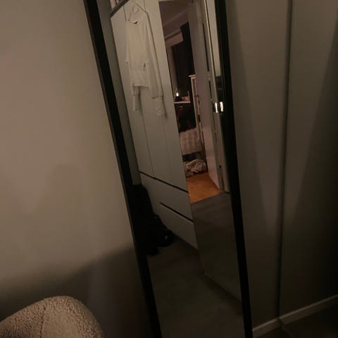 spegel med måtten 40x80 cm. Spegeln har en ram i en neutral färg och är avsedd för allmänt bruk.