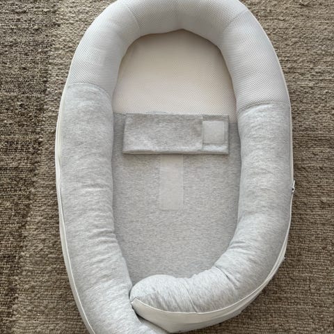 Ljusbeiget babynest från Voksi. Avtagbar och tvättbar klädsel. Ca. 80x50 cm. Går att ha öppen/stängd vid fotänden. Perfekt för första tiden för bebisen.