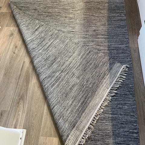 Vit ullmatta i vit färg med lång lugg, i fint men använt skick. 170x240cm. Står ihoprullad och redo att hämtas på Söder.