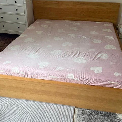 Grön säng i allmoge med två sängbord + lampor