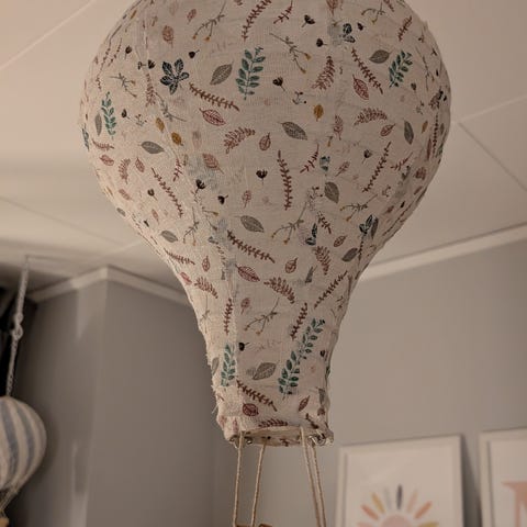 Fin lampa i storlek ca 30 cm som både kan hängas eller stå, drivs av 2 AA batterier