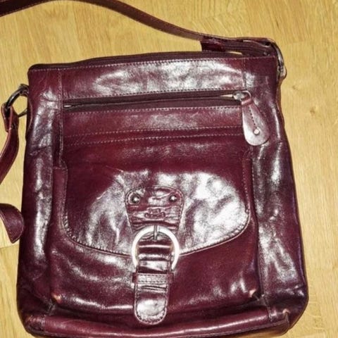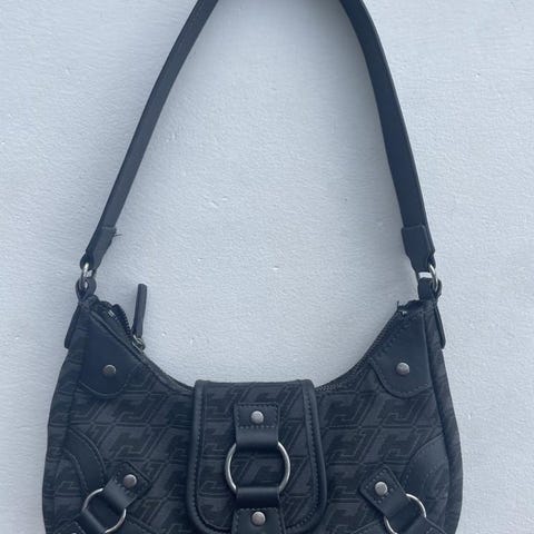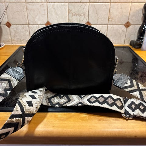 Handväska i svart läder för unisex. Väskan har en justerbar axelrem och en rymlig insida med veckdetaljer på framsidan.