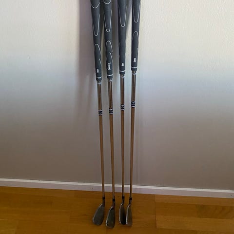 Callaway X-14 golfklubbor set bestående av flera järnklubbor med stål skaft och standardgrepp. Klubbhuvudena är i metall med en klassisk design. Setet är avsett för golfspelare och kan användas för olika slag på golfbanan. Obs Cobra 7an är sprucken