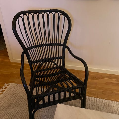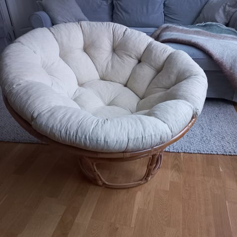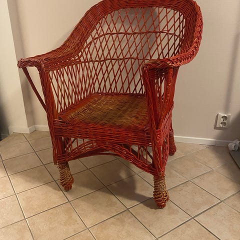 Säljer en snurrbar rottingfåtölj i klassisk bohemisk/vintage stil. Stabil och bekväm att sitta i, passar perfekt i vardagsrum, läshörna, sovrum eller uterum (inglasat).