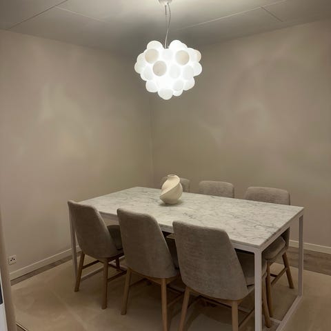 Säljes matbord med svarvade ben och äkta skiva i carrara marmor. Säljes pga flytt. Finns på Slottshöjden