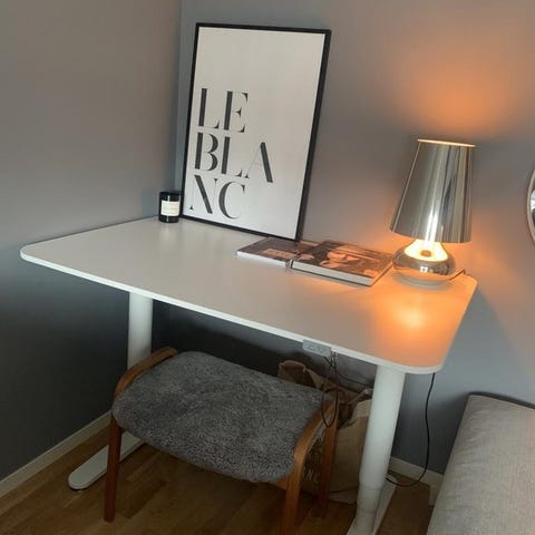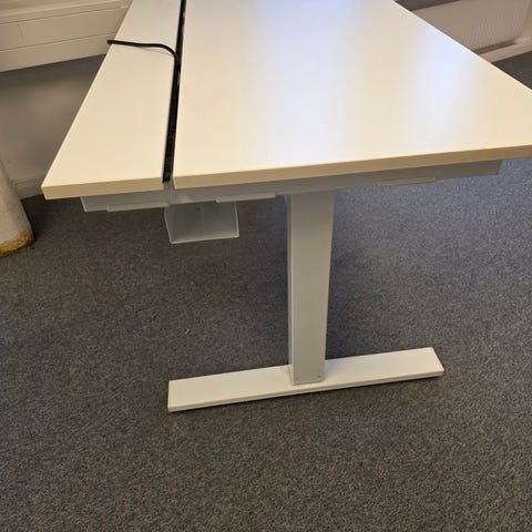 De går att höja skrivborden men det har inte funkat då man måste fixa manick. Tyvärr har vi inte tid att göra det innan därför säljs billigare. Över en meter bredd och ca 80 djup.