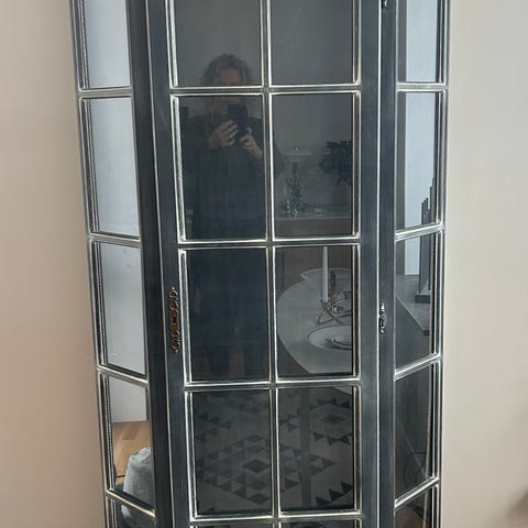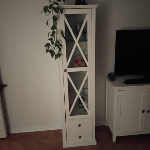 Skåpet är i massiv ek med glassidor och ett underskåp.hämtas.8kantigt 2mh 60cmb.
